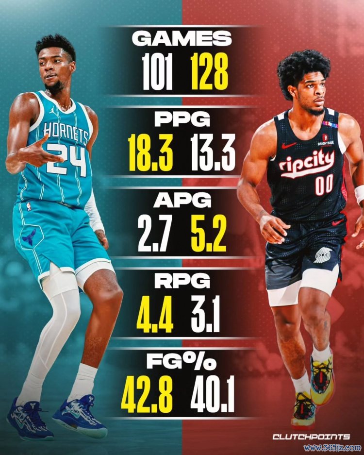 美媒Cluthpoints晒图,对比了2023年榜眼米勒和探花亨德森的数据,米勒出战101场,场均18.3分2.7助功 4.4篮板球 ,命中率42.8%,亨德森出战128场,场均13.3分5.2助功 3.1篮板球 , 本菲卡命中率40.1%,乒乓球并写道: