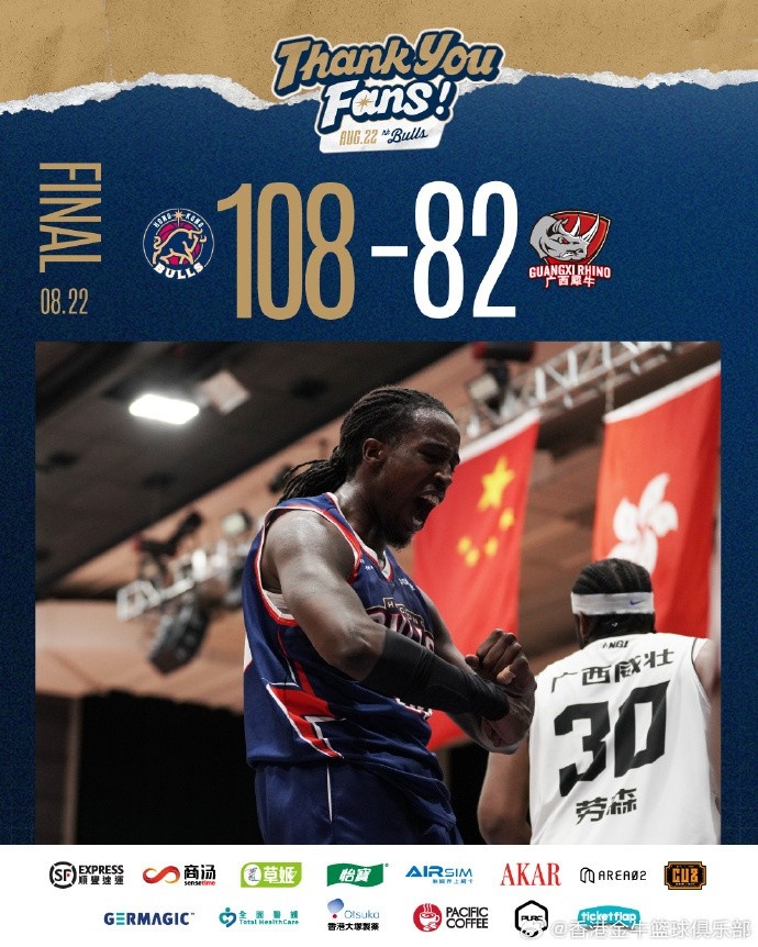 全场赛事 结束,香港金牛108-82战胜广西威壮!