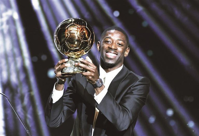在典礼众奖项当中,“金球奖”无疑是最耀眼的,这一次,登贝莱登上了最高领奖台。他身边,是女足“金球奖”的获得者邦马蒂。