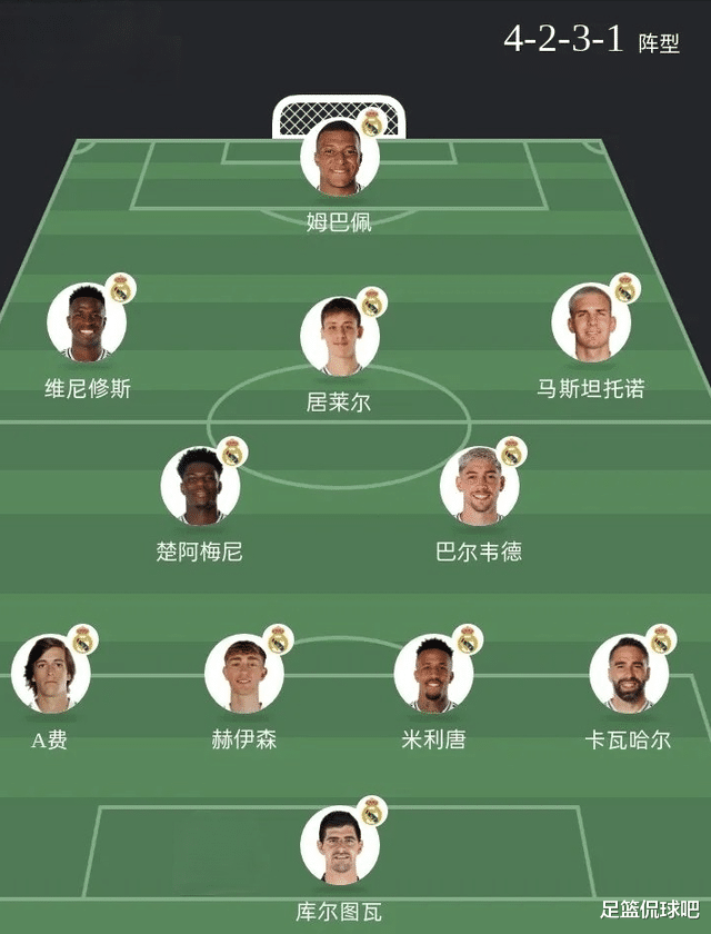 皇马目前的常规阵形 为4231,锋线三叉戟中姆巴佩居中,维尼修斯在左,马斯坦托诺在右,明确姆巴佩为球队策略 核心,而维尼修斯策略 地位的下滑也引起了他的不满,尤其是本赛季多次被提前换下,乒乓球让他离队的传闻已经越来越多, 超级运动天地从他场上肢体语言就能看出来他不开心。另外, 本菲卡阿根廷小将马斯坦托诺加盟以来在前场非常活跃,已经深得阿隆索的信任,他逐步占据了皇马前场的一个杆位位置。中场球员以居莱尔为前腰组织攻击 ,楚阿梅尼和巴尔韦德搭档双后腰,后场以新援赫伊森为主要出球点。
