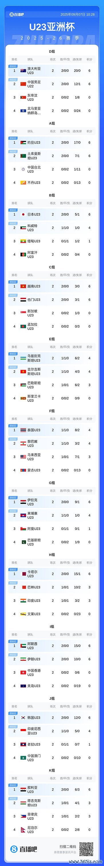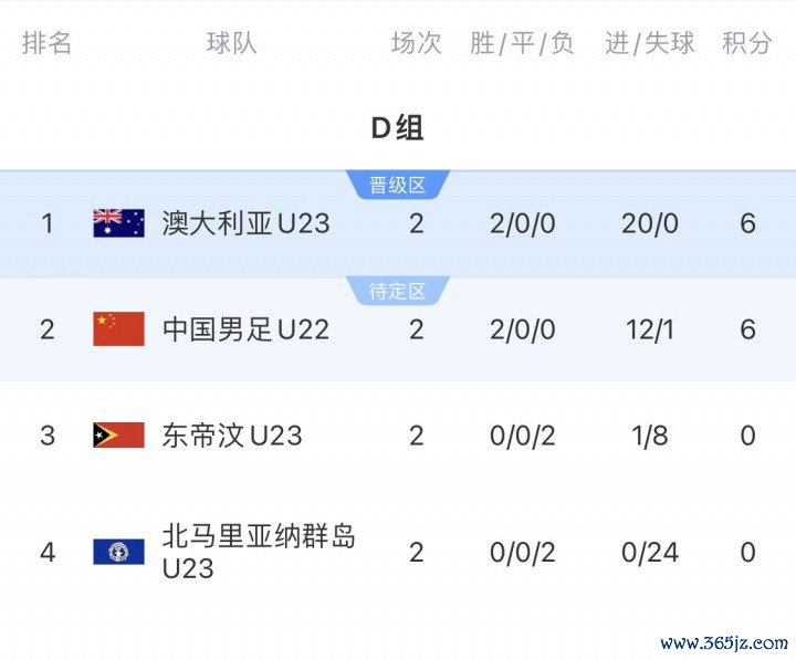 直播吧09月07日讯U23亚预赛前两轮结束,中国U22国足首场2-1险胜东帝汶,次轮10-0大胜北马里亚纳群岛,目前2胜进12球丢1球积6分排名小组第二, 超级运动天地净胜球11球。