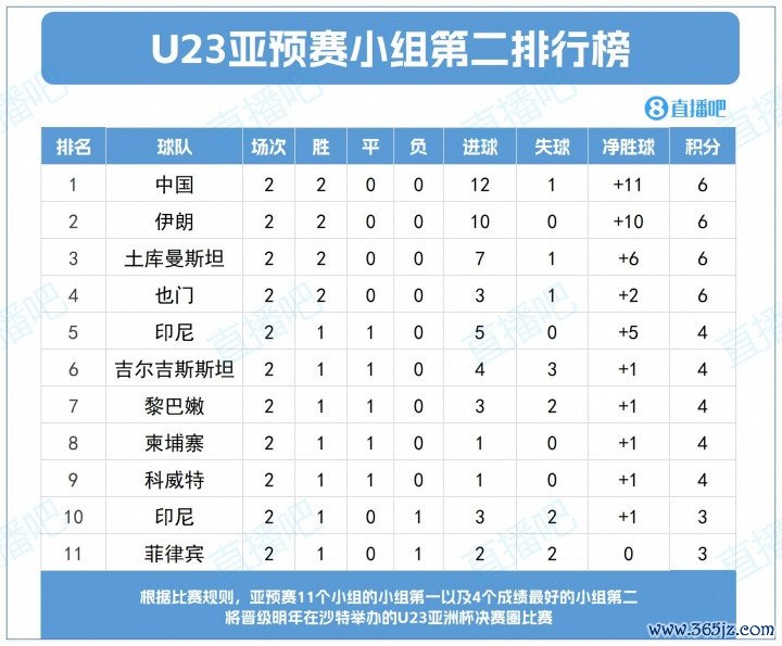 按照U23亚预赛规则,11个小组的小组第一以及4个成绩最好的小组第二,将晋级下一轮 明年在沙特举行的U23亚洲杯总决赛 阶段赛事 。
