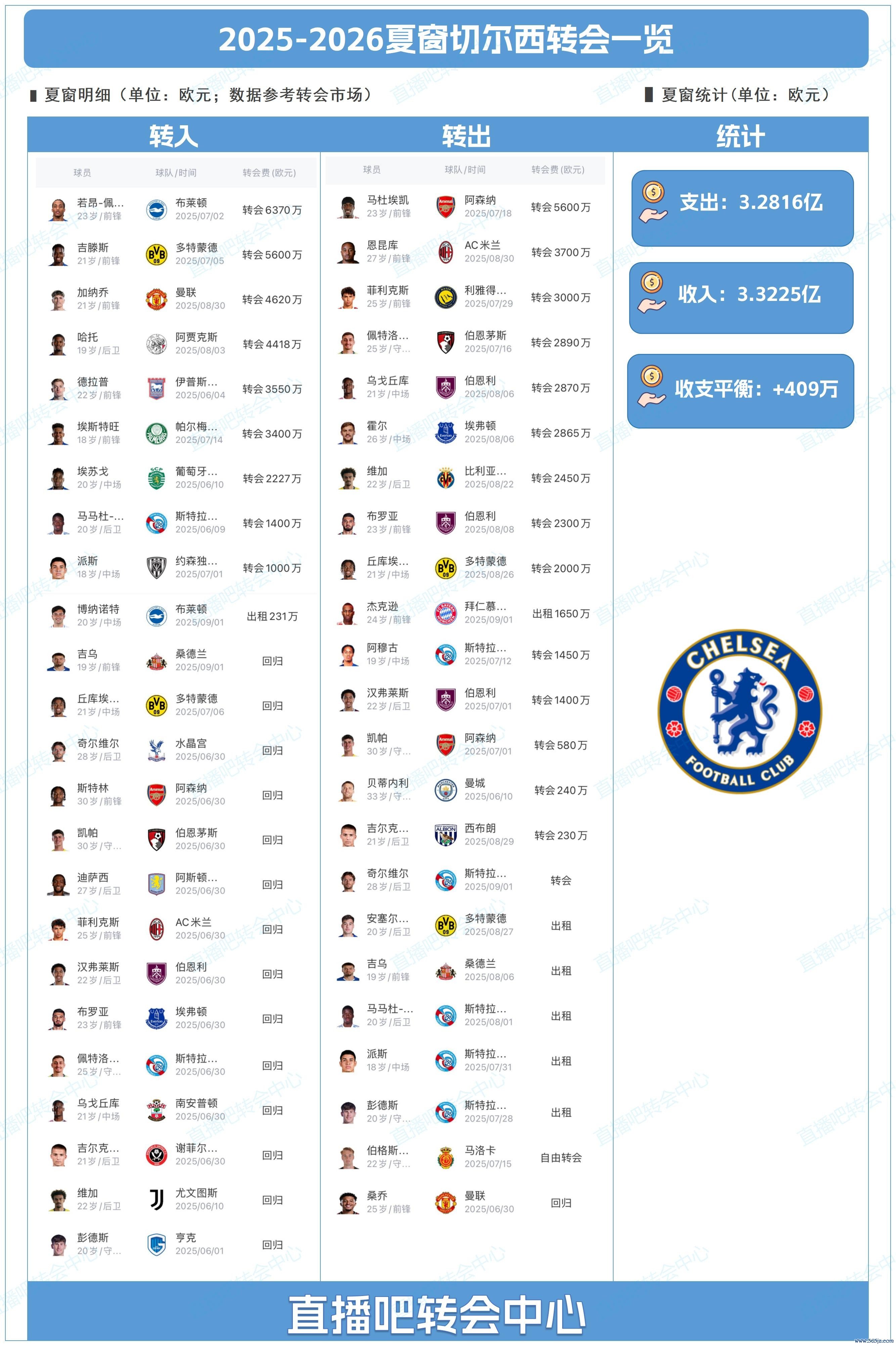 砸3.3亿还有赚! TA: 切尔西夏窗大获成功, 提升阵形 深度&还有资金