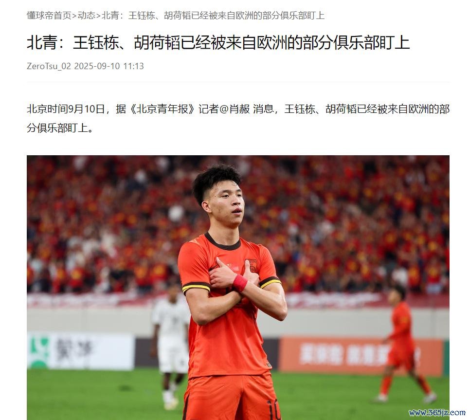 此外,这家权威媒体还爆料了一则消息,就是王钰栋、胡荷韬已经被部分欧洲俱乐部盯上,最快会在今年全运会结束之后留洋,足球直播吧也就是12月份签约加盟。