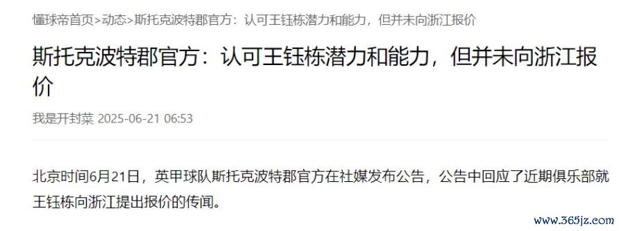 很快斯托克波特郡俱乐部官方在社媒发布公告足球竞彩网官网,表示俱乐部认可王钰栋的潜力与能力,并且认为他符合申请ESC名额豁免劳工证的要求,但是没有向浙江古代足球 俱乐部提出任何转会报价,一切转会消息请以官方为准。