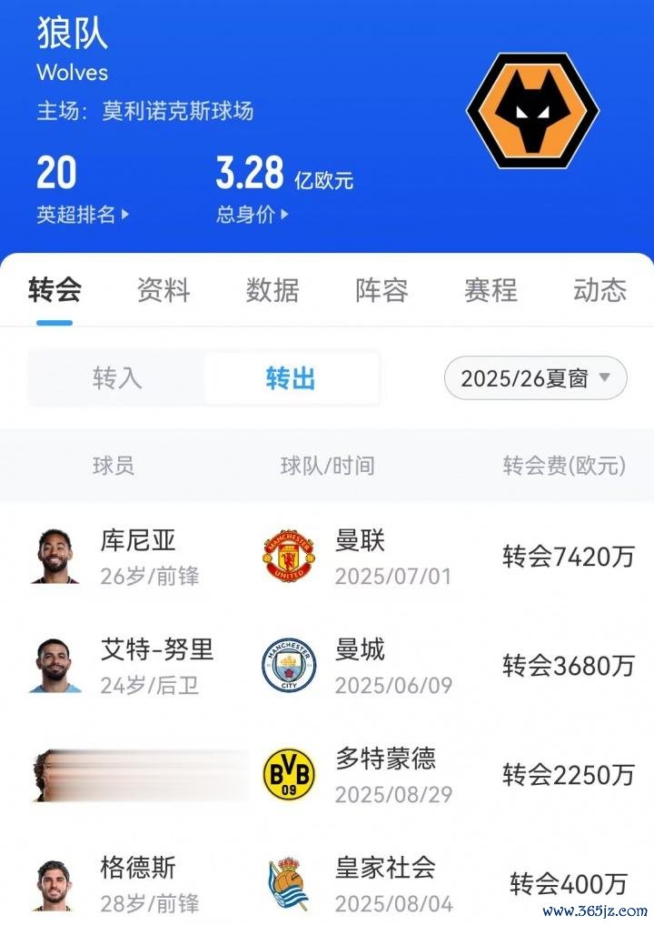 今夏狼队再次遭遇球队换血:攻击 核心库尼亚以7420万欧元价格加盟曼联, 超级运动天地足球直播吧边后场球员艾特-努里也加盟曼城。此外, 本菲卡前场球员法比奥-席尔瓦离队加盟多特。